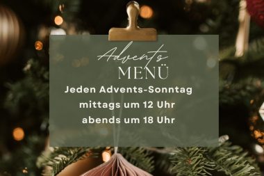 Genießen Sie unser Advents-Menü an allen Advents-Sonntagen mittags um 12 Uhr und abends um 18 Uhr