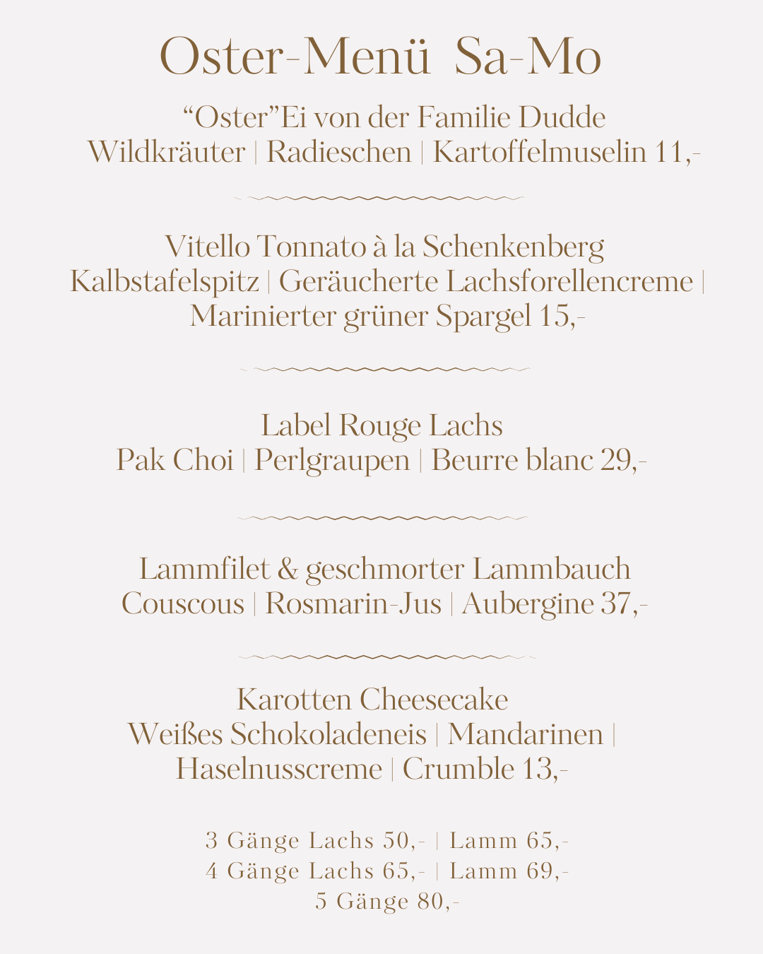 – Montag, 06. April Oster-Menü und à la Carte – der perfekte Abschluss eines genussvollen Osterwochenendes.